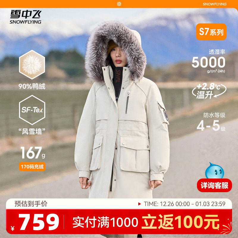 雪中飞冰雪系列25冬新女士长款羽绒服银狐毛领工装户外高端加厚