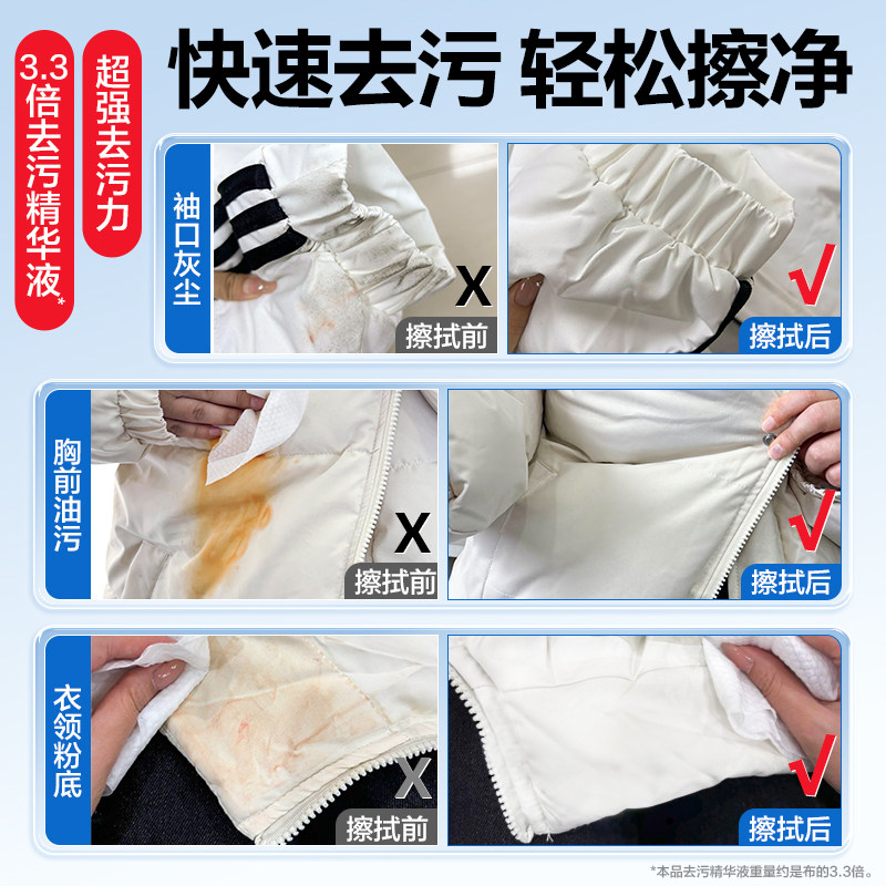 羽绒服免洗清洁湿巾强力去污去渍免水擦衣物便携干洗专用独立包装