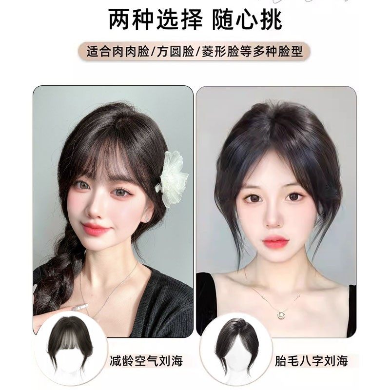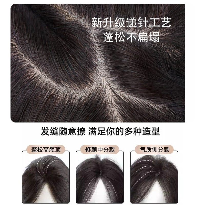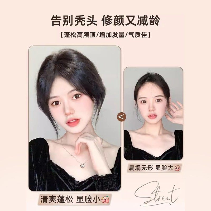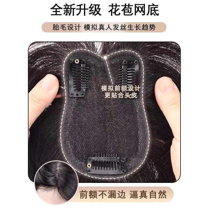 假发片女头顶自然前额量蓬松高颅顶八字刘海真发遮白发补发片胎毛