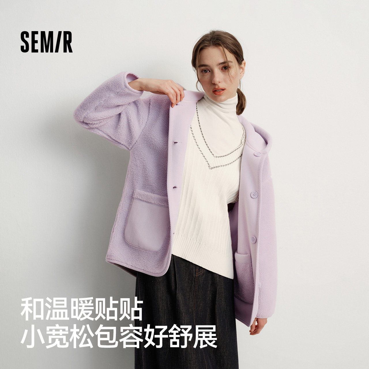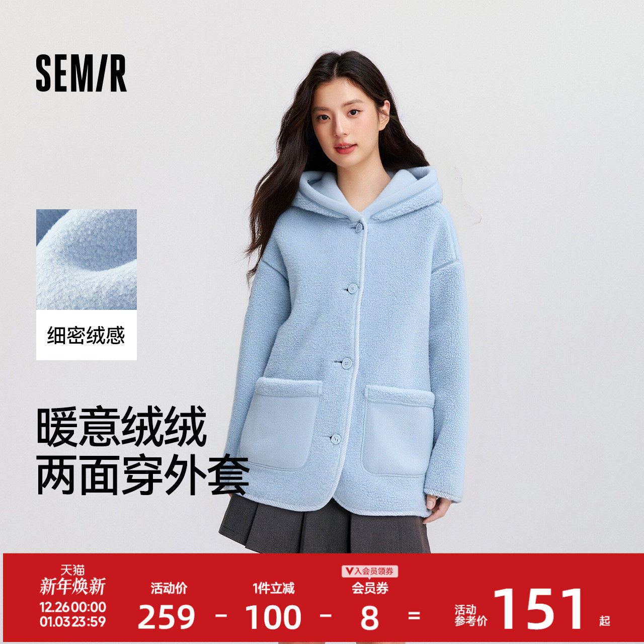 森马外套女冬季两面穿卫衣仿羊羔毛摇粒绒2025新款纯色上衣夹克
