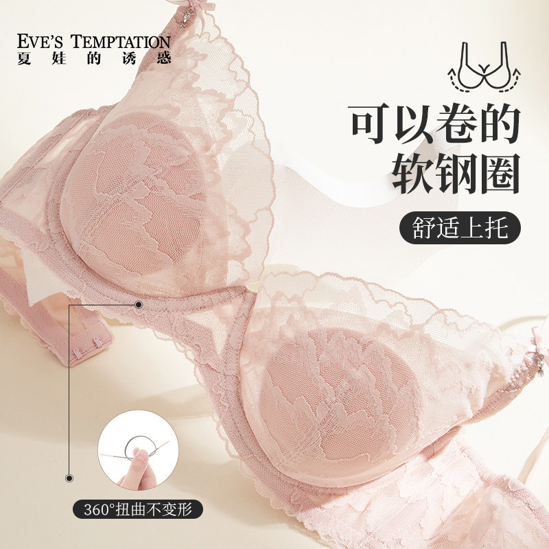 夏娃的诱惑内衣内裤套装女夏季薄款法式蕾丝性感文胸聚拢防下垂