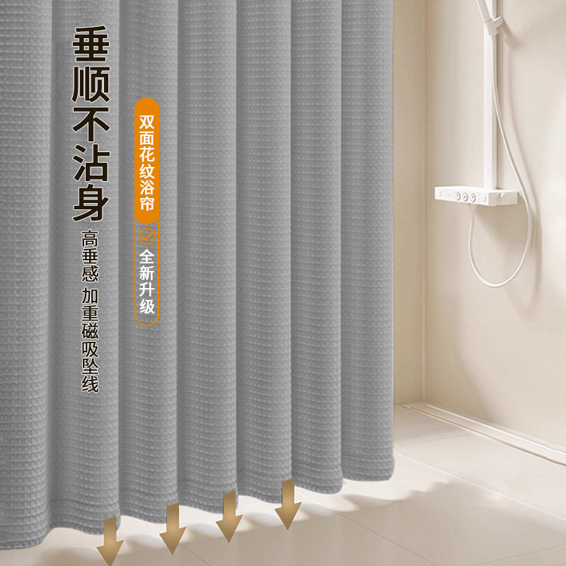 高档浴室防水浴帘卫生间干湿分离淋浴窗帘隔断速干防霉遮挡免打孔