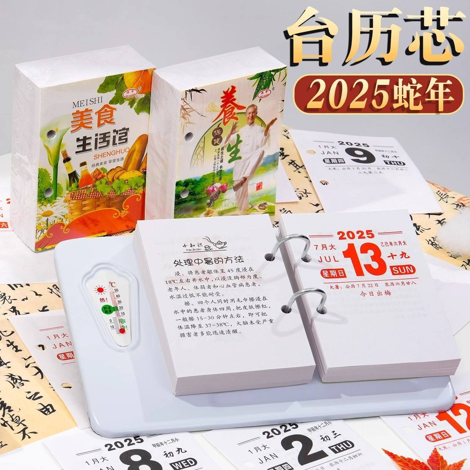 蛇年台历芯桌面日历2025年台历架日历本美食养生百科记事办公台历