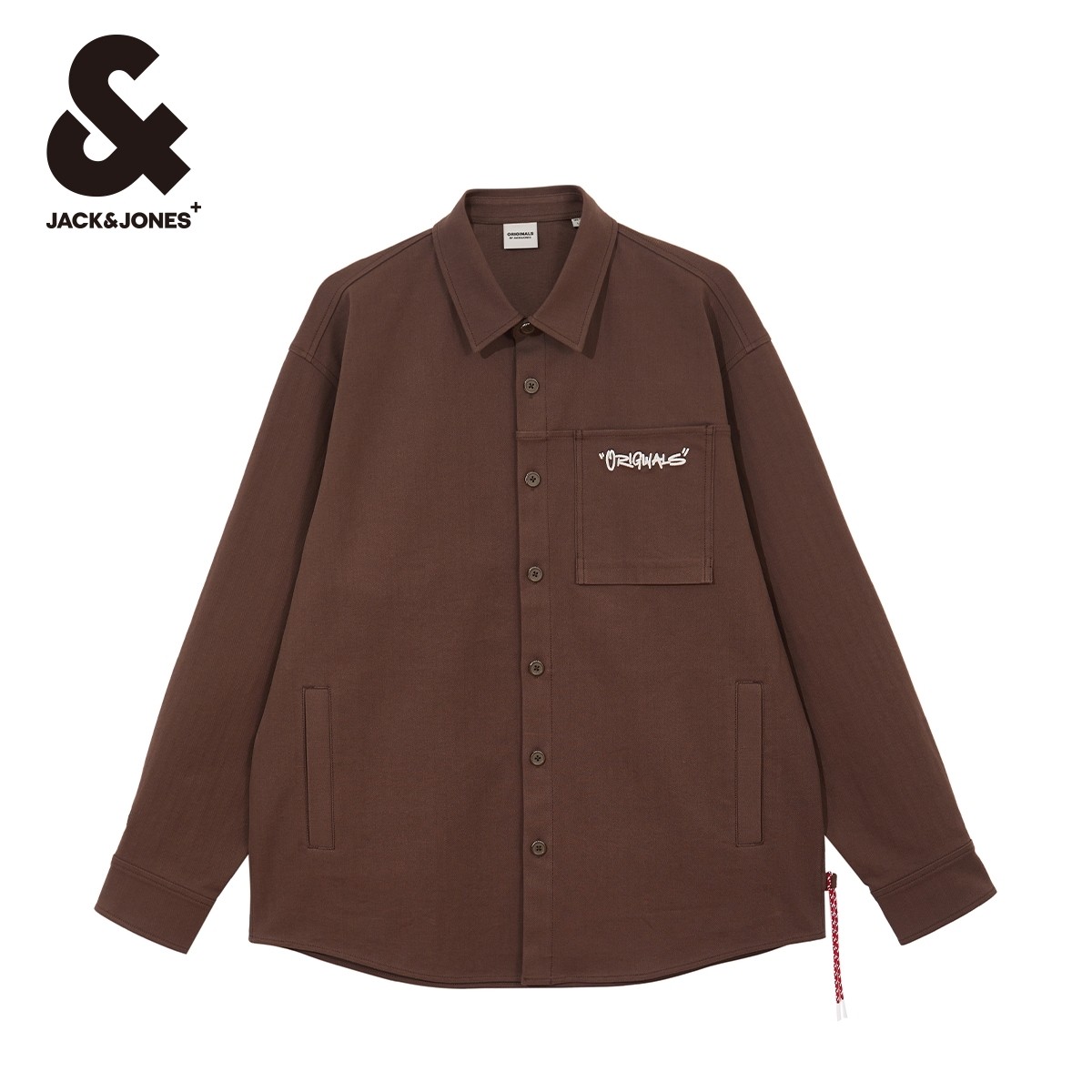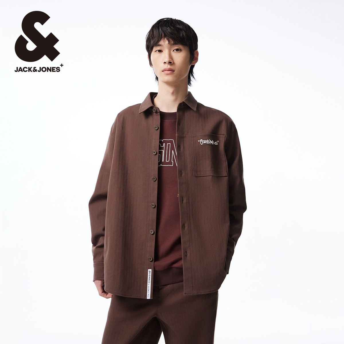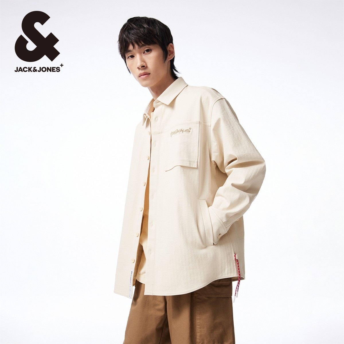杰克琼斯24年新款男士口袋字母刺绣翻领纽扣外套长袖衬衫男款男装