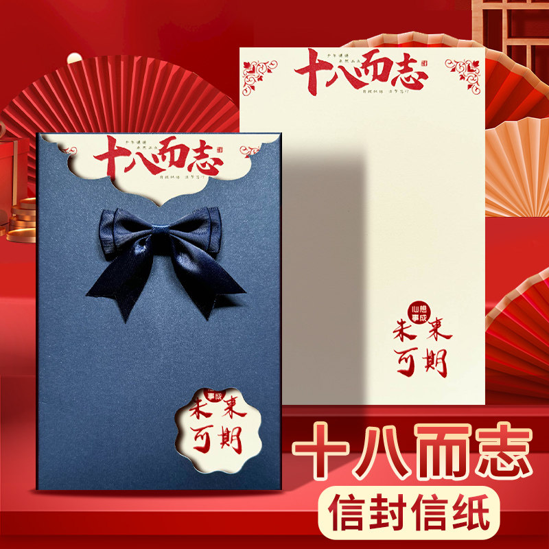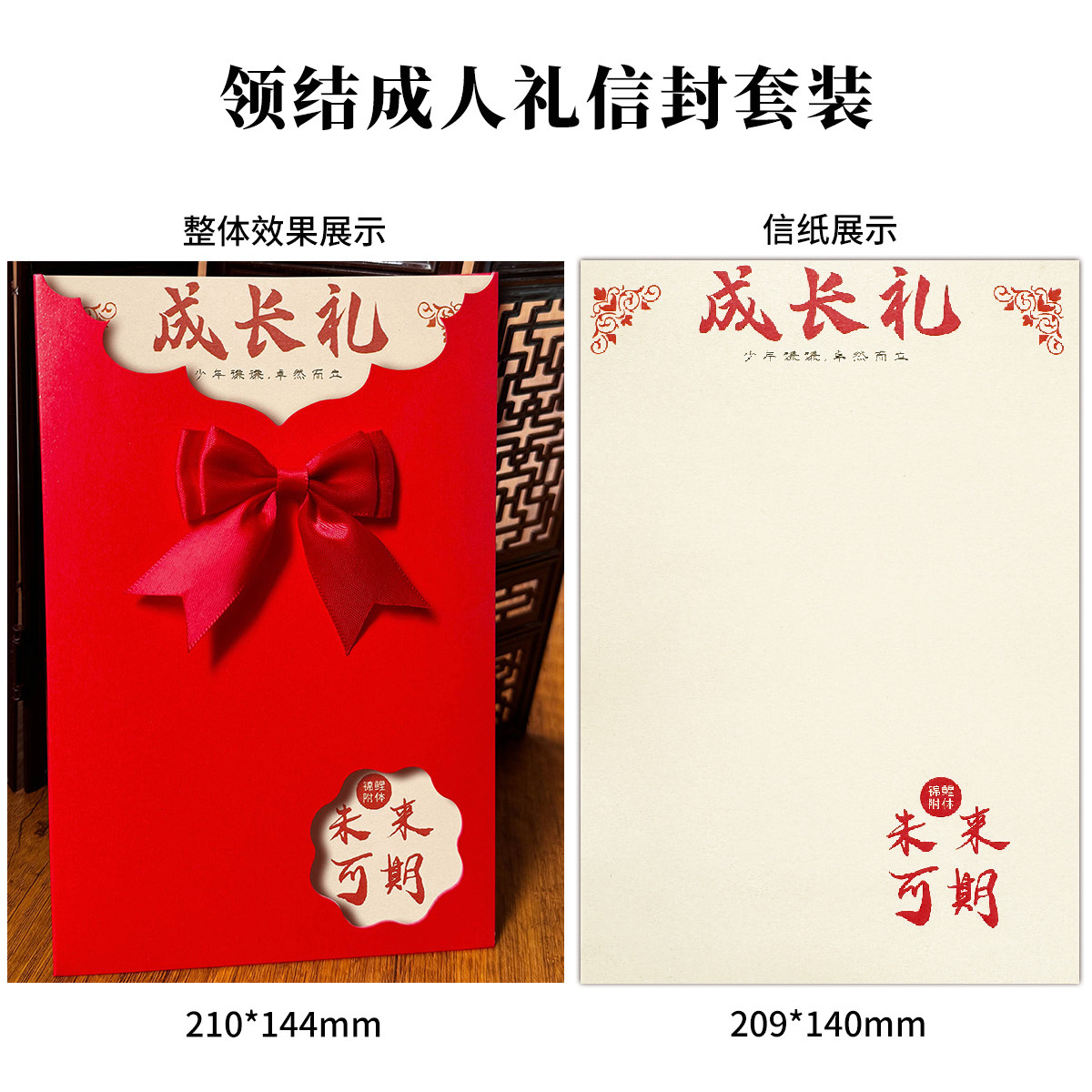 10十岁成长礼贺卡手写信纸和加信封套装蝴蝶领结儿童成人仪式高级感精致中式复古中国风信笺红色14岁18青春礼