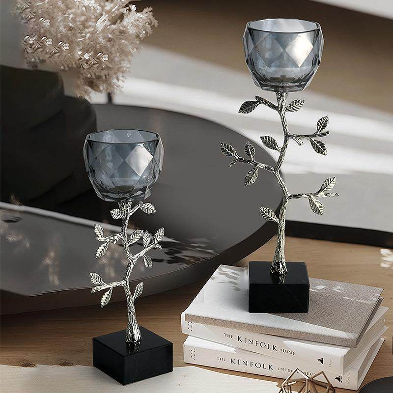 北欧轻奢玻璃烛台样板间客厅玄关水晶摆件家用烛光晚餐浪漫蜡烛台