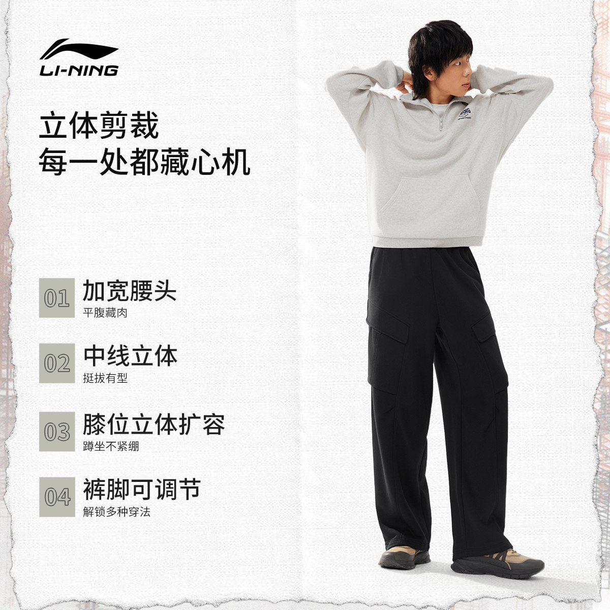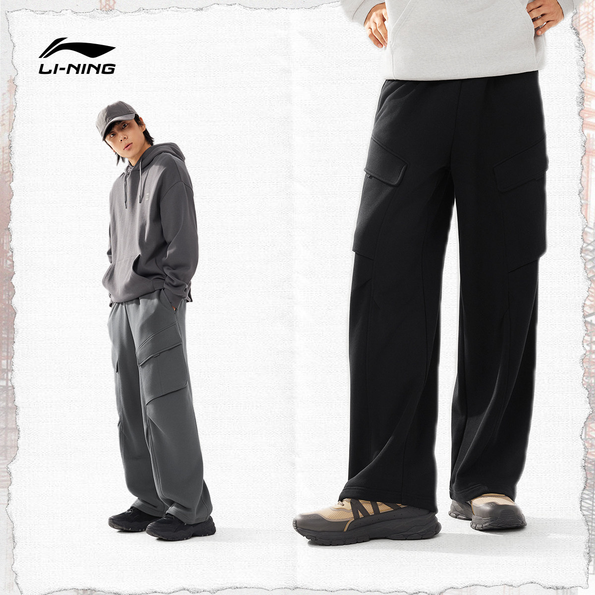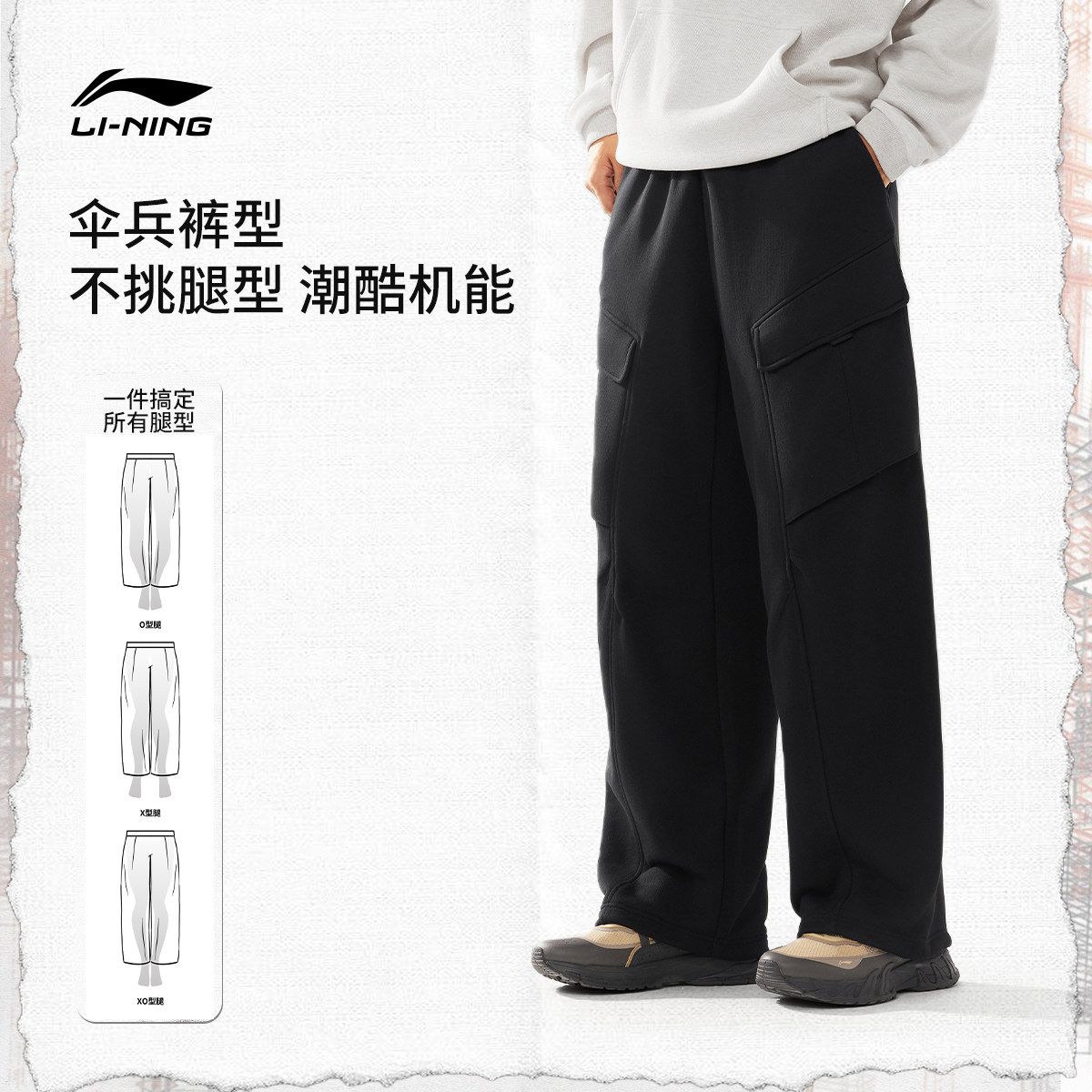 李宁C位裤丨伞兵裤男士新款冬季休闲毛圈直筒宽松舒适针织运动裤
