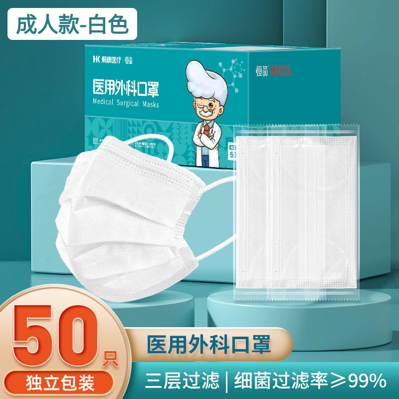 独立装外科口罩三层防护一次性口罩防粉尘透气成人儿童防勒耳学生