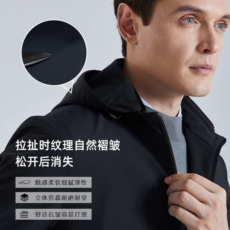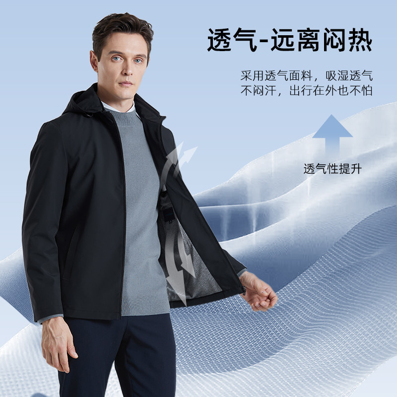 SHANSHAN杉杉官方男士夹克外套男2025秋季中年爸爸装男款连帽茄克