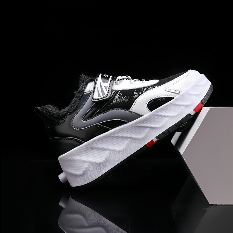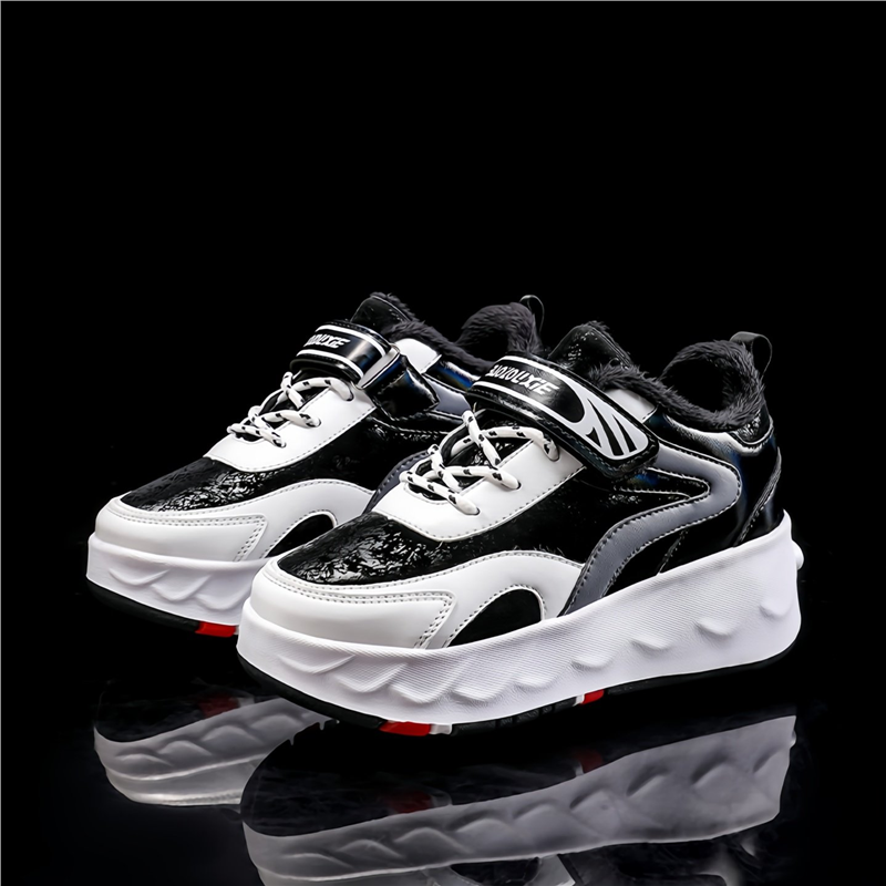 暴走鞋男童冬季加绒溜冰运动鞋飞行四轮可收缩儿童隐形运动轮滑鞋