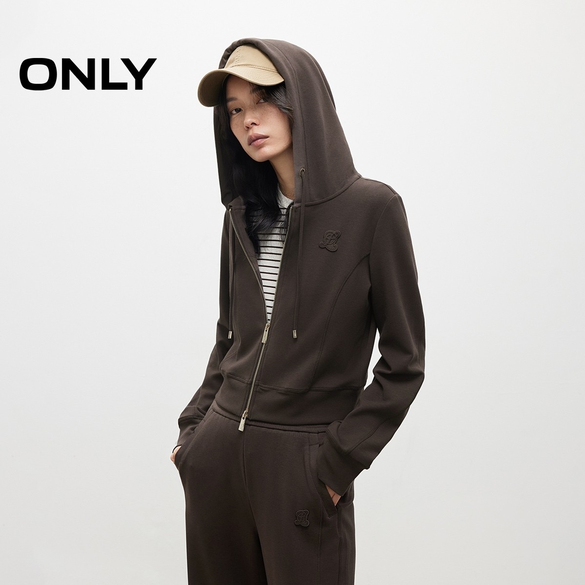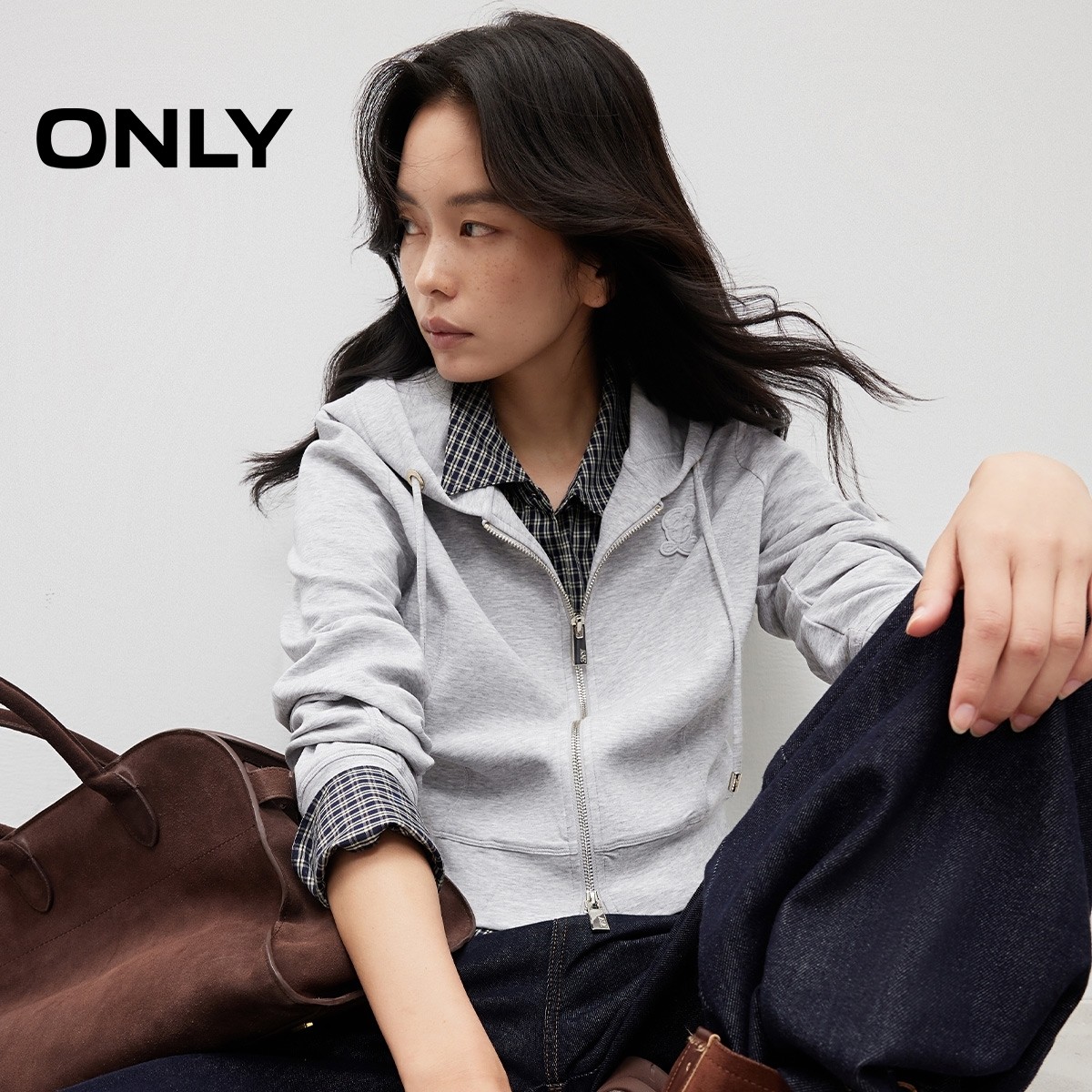 ONLY春季运动休闲解构弧线剪裁收腰显瘦连帽开衫卫衣上衣女