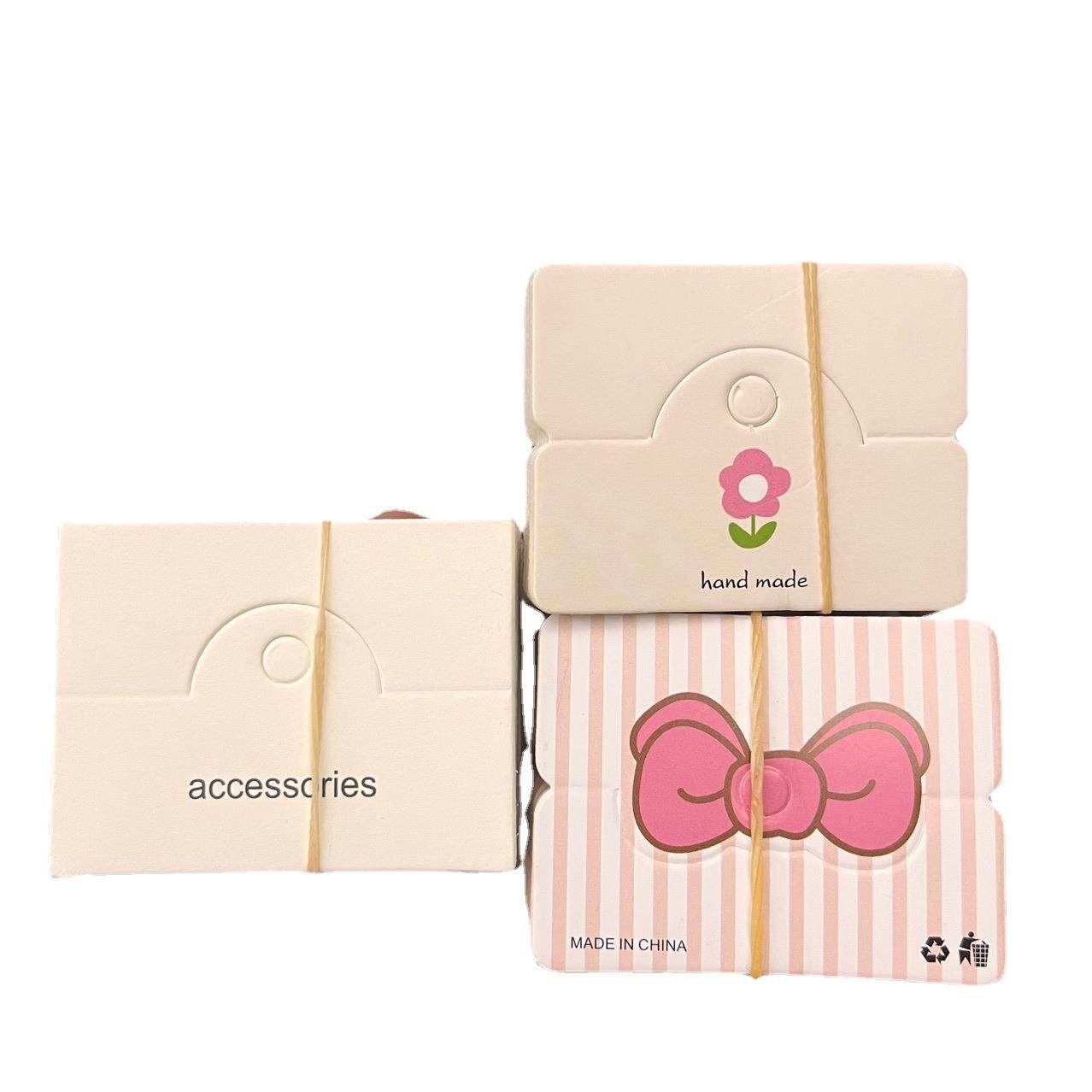 百张6.3×3.8直播间发饰品包装领结对折卡纸小花卡片卡通发夹卡头