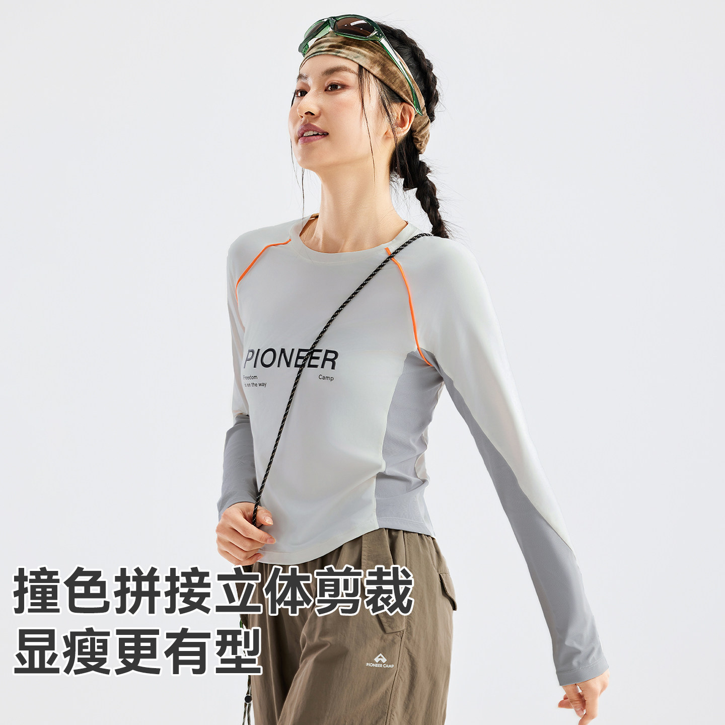 拓路者吸湿速干运动长袖t恤女秋圆领拼色内搭户外徒步贴身层上衣