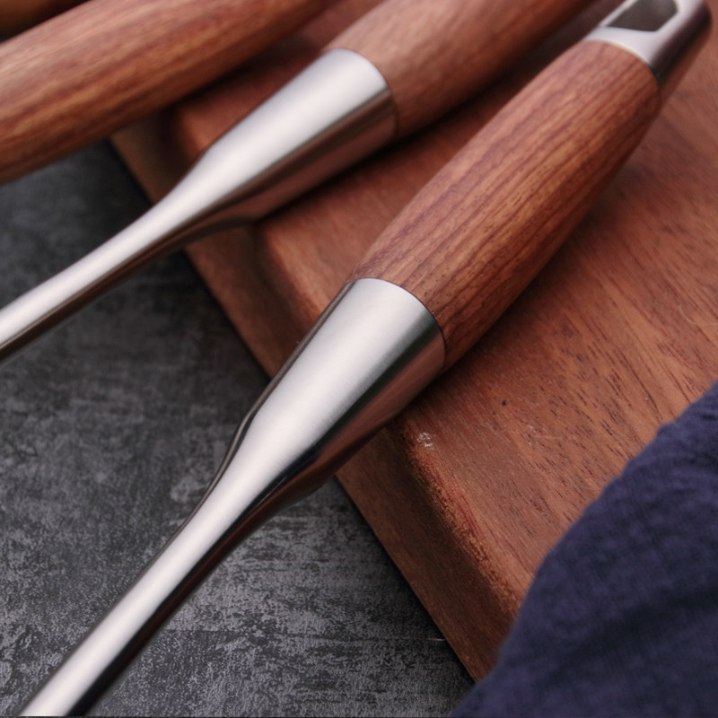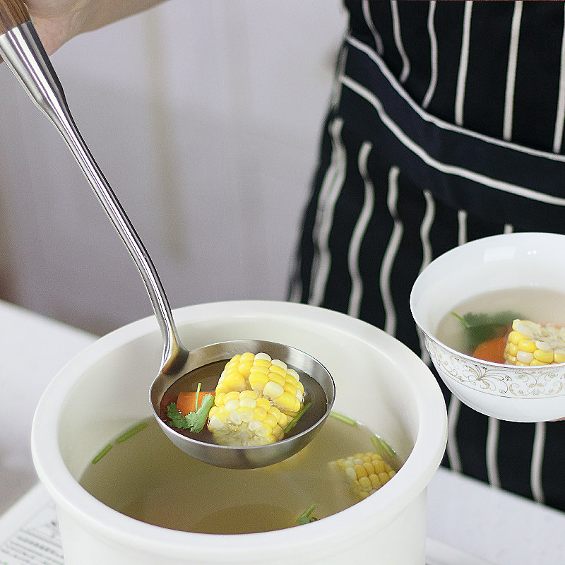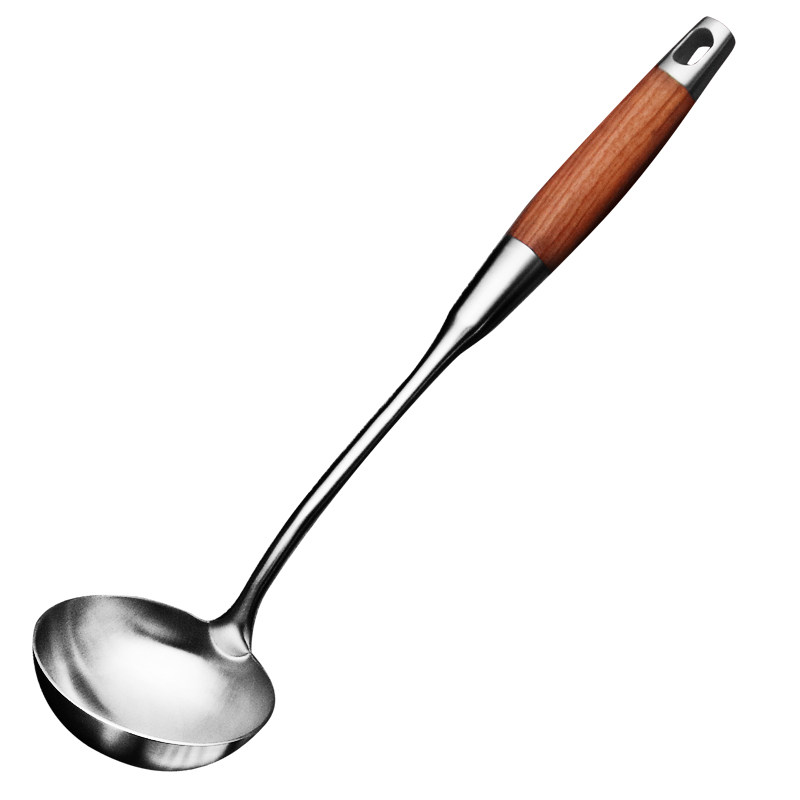 国风304不锈钢勺厨房家用厨具长柄木柄汤勺炒勺大号盛汤炒菜勺子