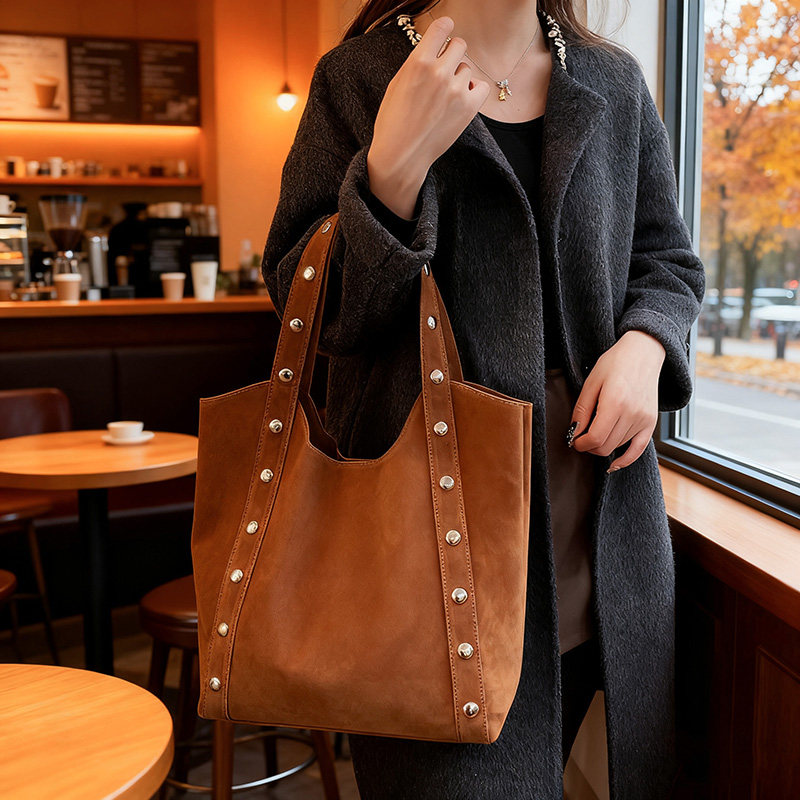MOBAG&KUENA秋冬时尚高级感托特包韩系大容量通勤铆钉单肩腋下包