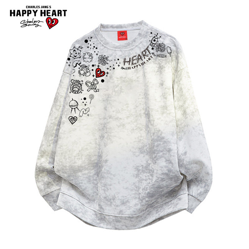 查尔斯桃心 美式扎染图案项链印花卫衣男圆领秋冬季新款百搭上衣