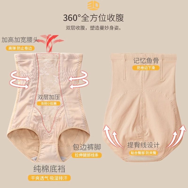 高腰收腹内裤女收小肚子强力收胃束腰提臀裤产后塑形纯棉收腹裤