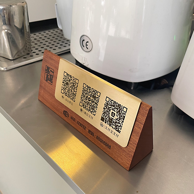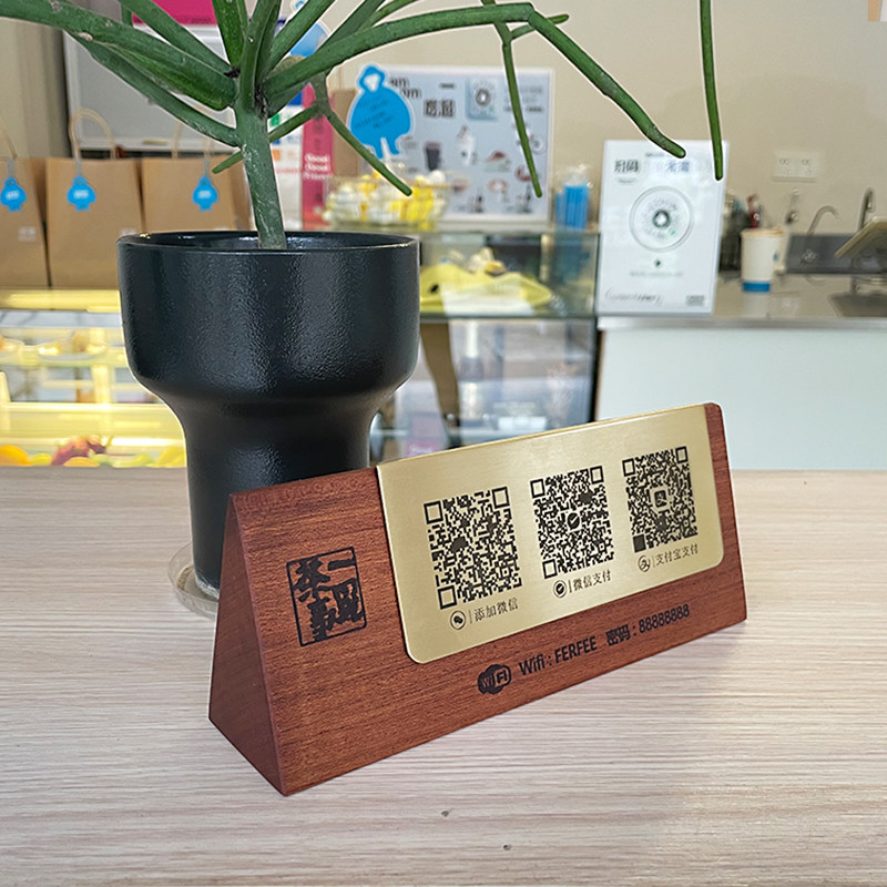 实木二维码展示收款码台s牌定制收银柜台前台扫码付款立式展示牌