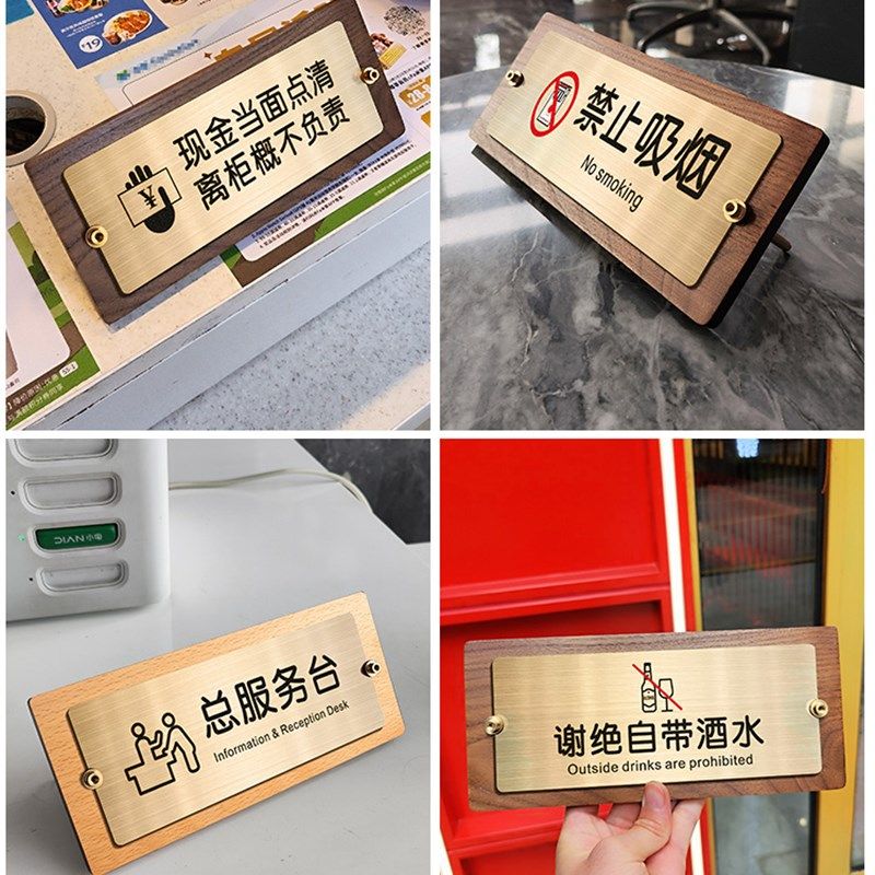 总服务台提示牌定制高档酒店宾馆饭厅饭店收银柜台指示标牌订制谢