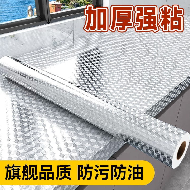 厨房防油贴纸防火耐高温灶台防水墙壁纸加厚自粘橱柜防潮铝箔锡纸