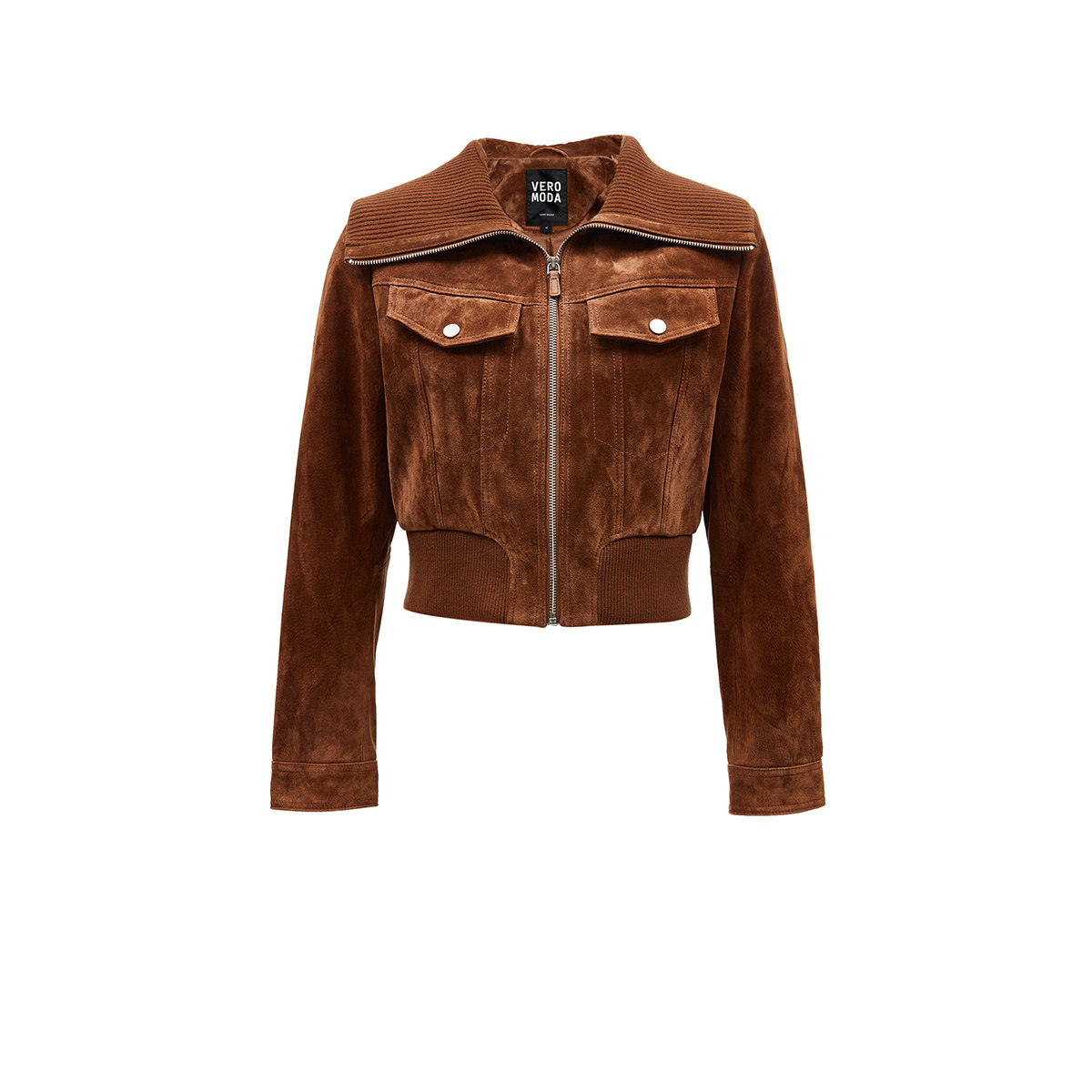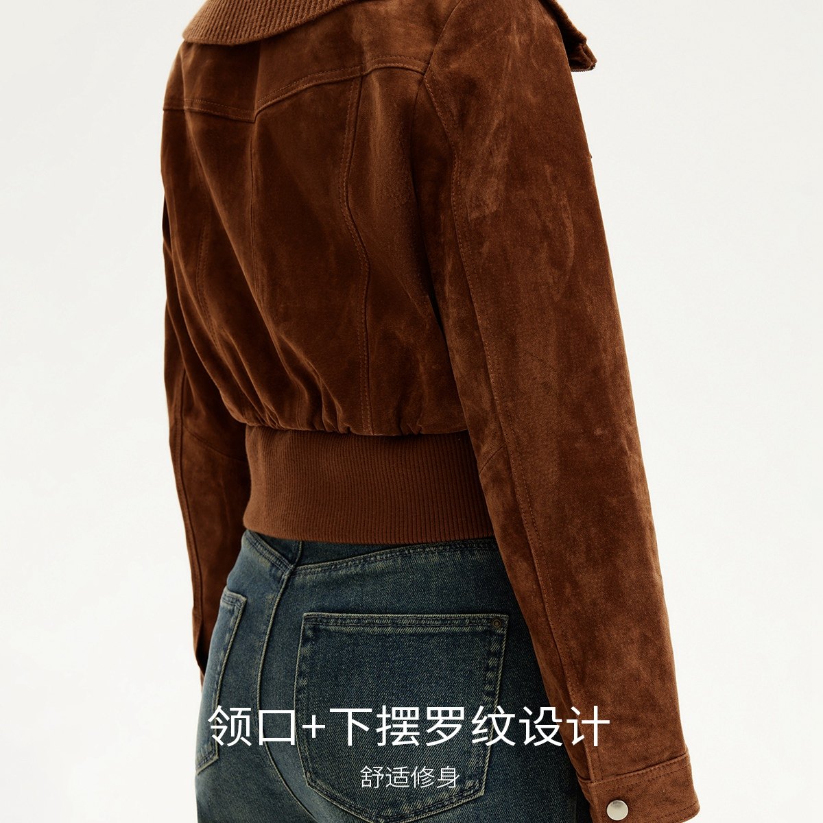 Vero Moda皮衣2025冬季新款针织拼接领短款外套通勤百搭325410006