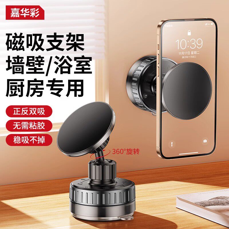 2025新款真空吸附手机支架桌面吸盘magsafe磁吸伸缩折叠便携架子车载家用墙壁浴室跑步机户外自拍通用神器