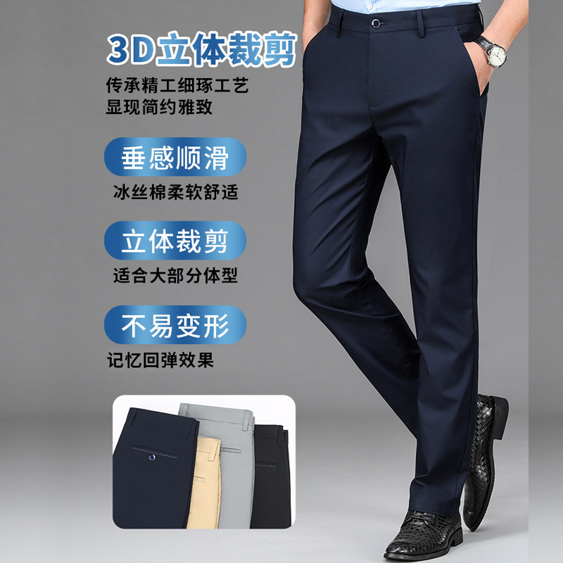 罗蒙休闲裤子男士商务休闲秋季新款抗皱弹力日常直筒西裤秋款