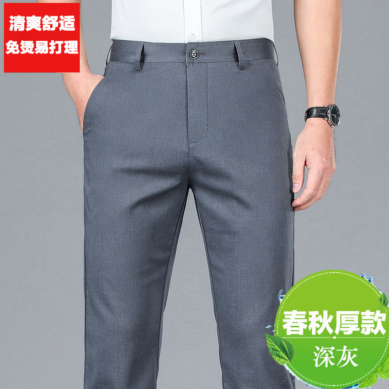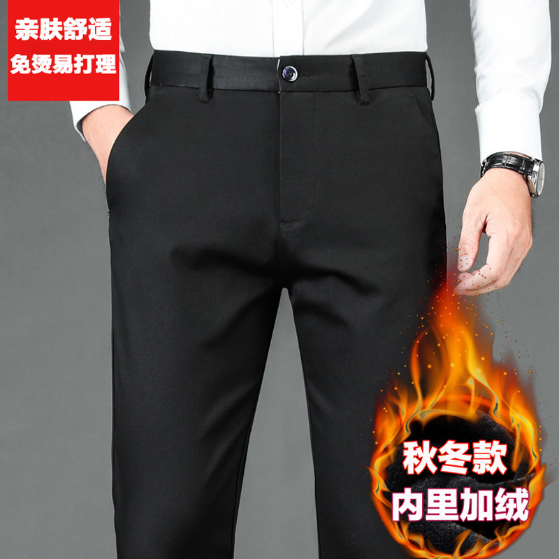春秋厚款休闲裤男直筒宽松弹力舒适商务西裤中年秋季男裤加绒保暖