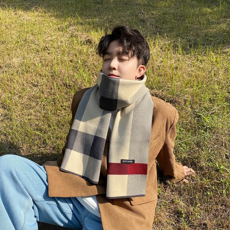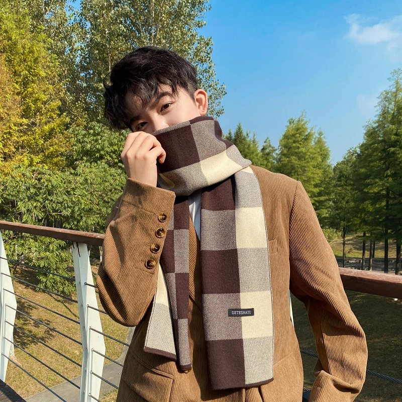 【王俊凯同款】骆驼围巾冬季高级感百搭保暖围脖男针织学院风围巾