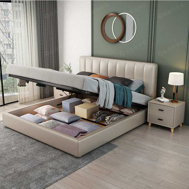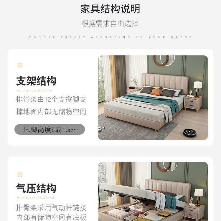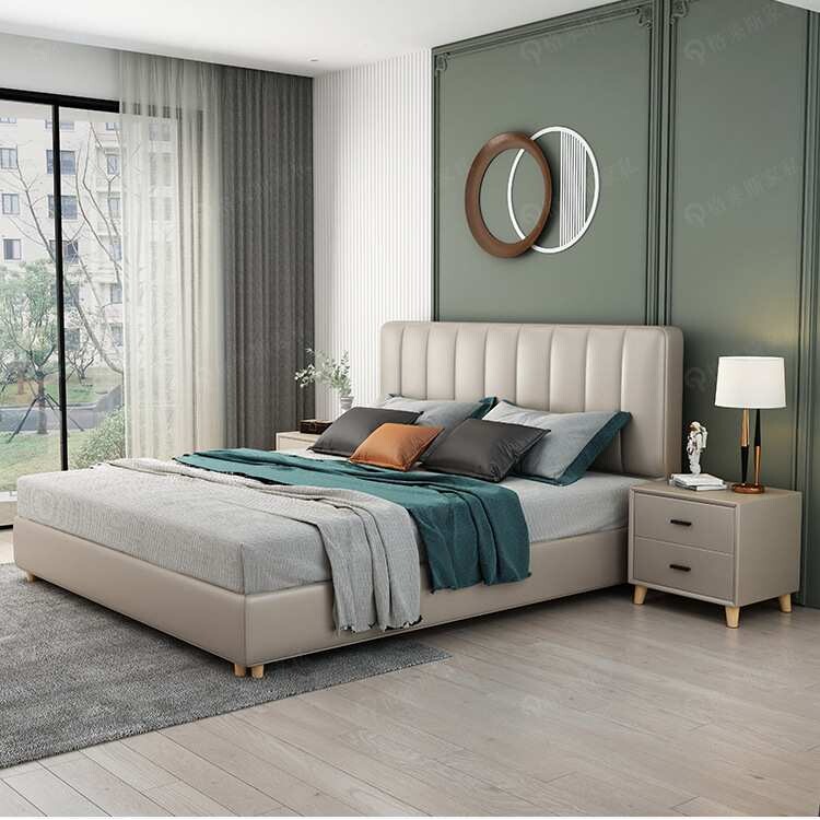 真皮床意式极简轻奢主卧真皮床北欧小户型皮艺软床双人床简约现代