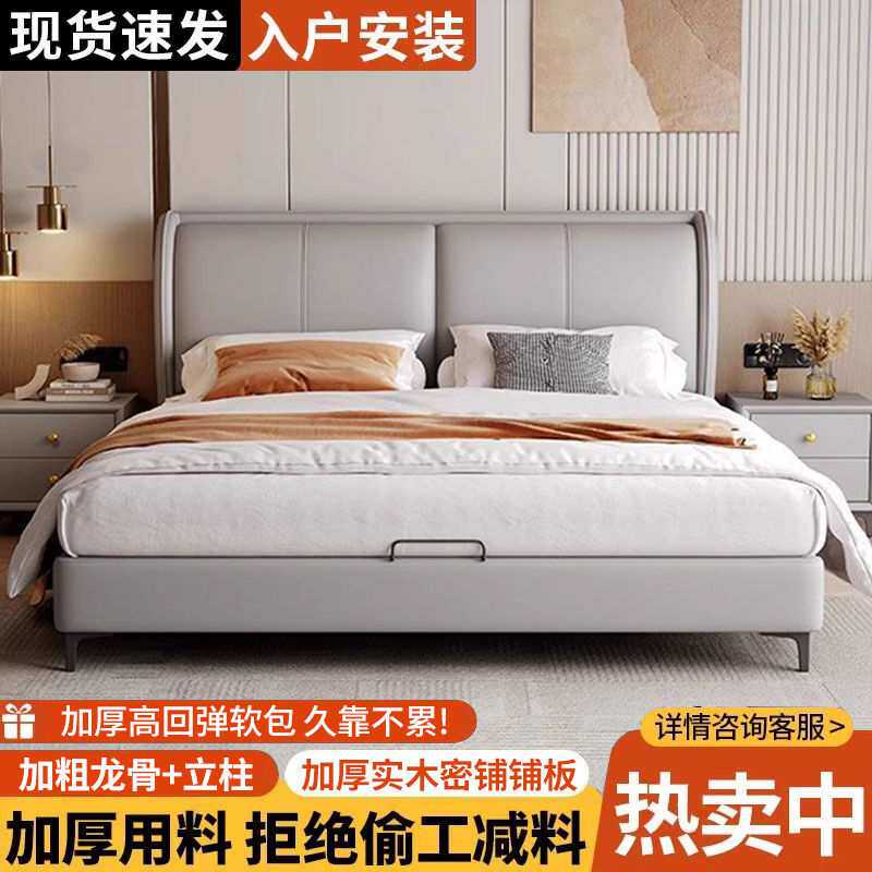 现代皮艺床轻奢意式皮床1.5简约家用双人床1.8北欧婚床主卧卧室