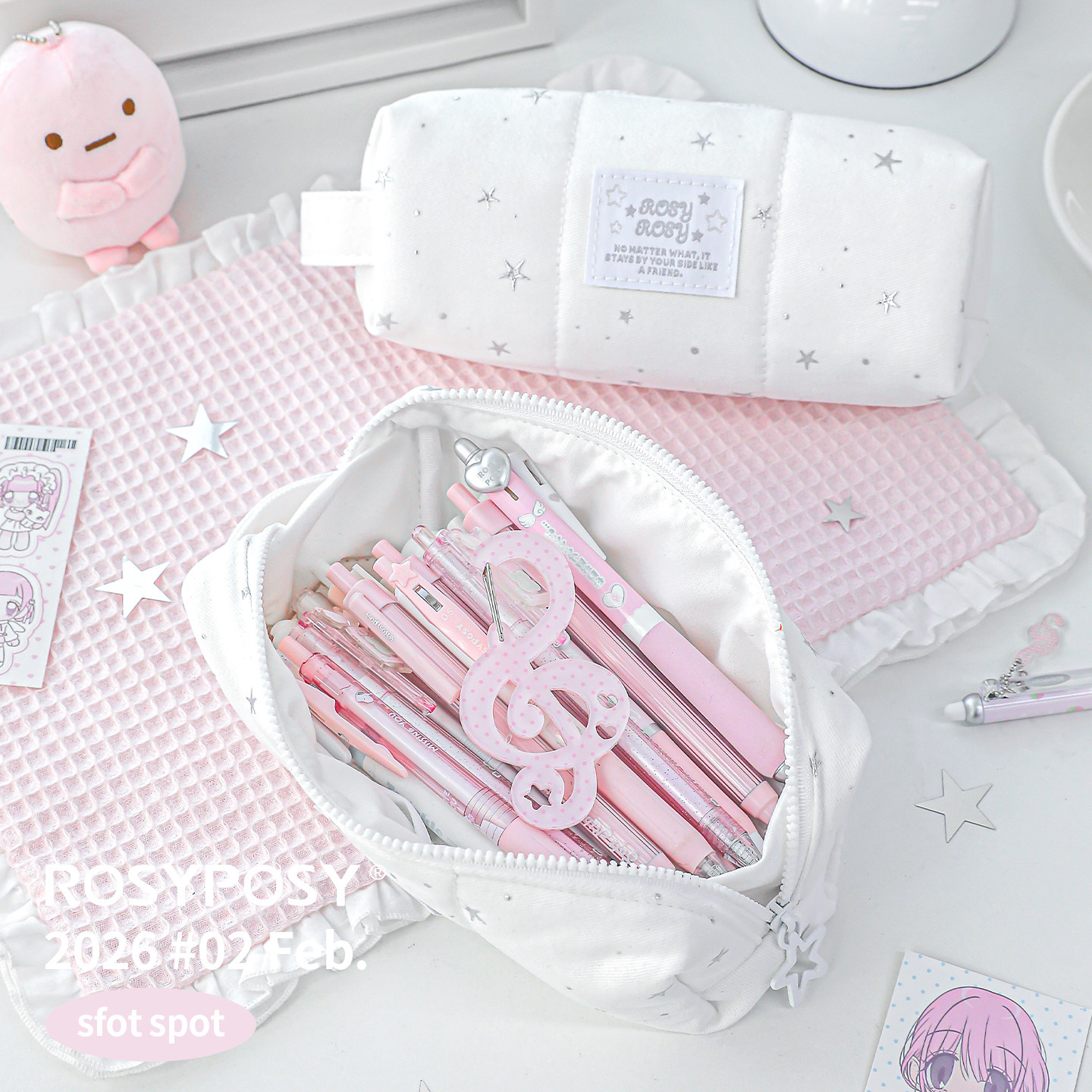 「韩国立体星星面料!」ROSYPOSY柔设好料笔袋大容量软ins高颜值