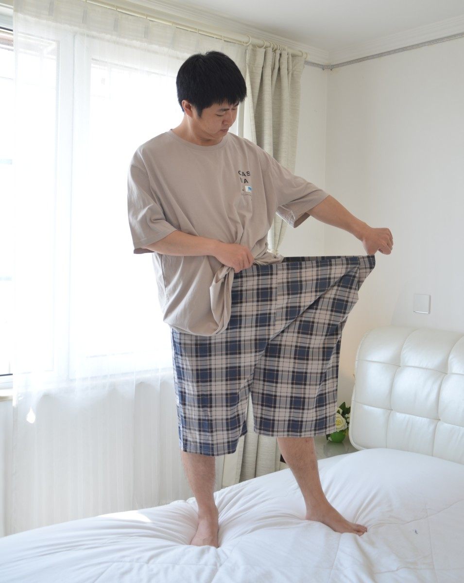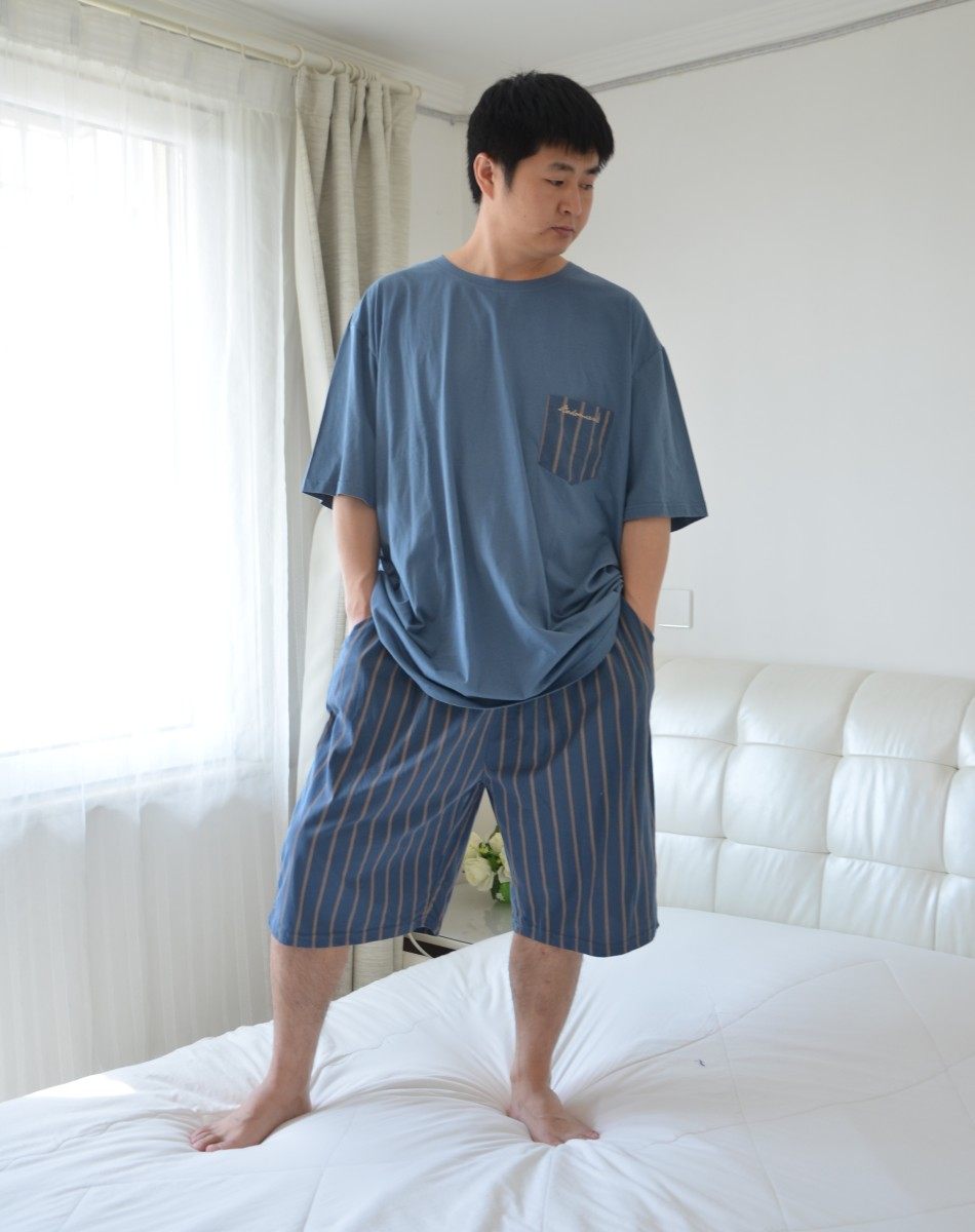 300斤超肥加大码薄款纯棉胖男士睡衣夏季短袖短裤休闲家居服200斤