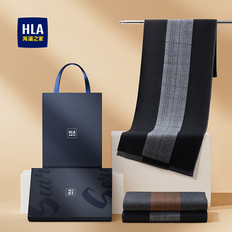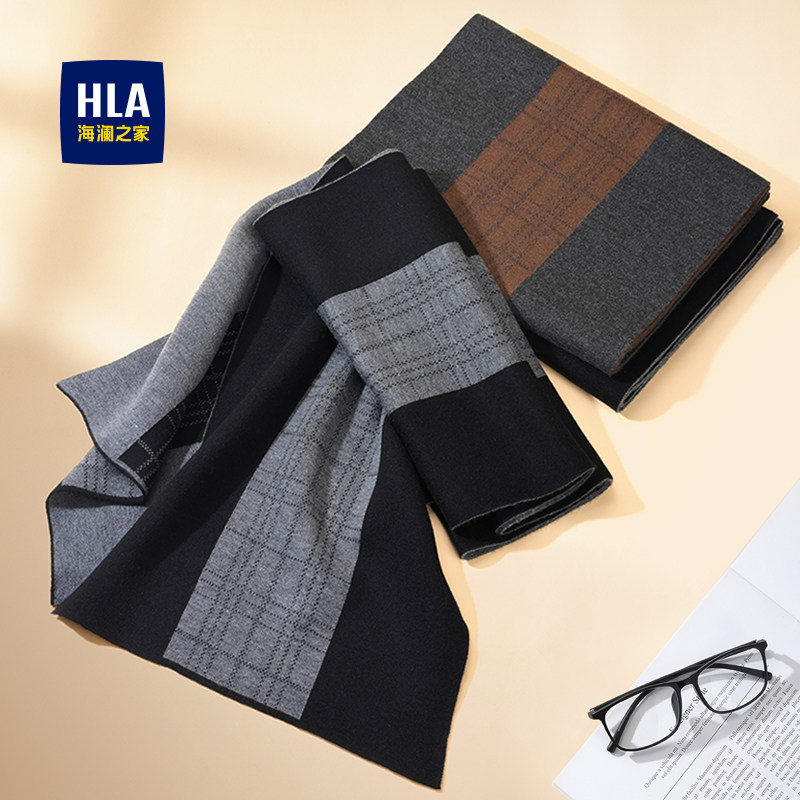 海澜之家围巾男士2025新款含羊毛秋冬保暖户外骑行开车格子围脖潮