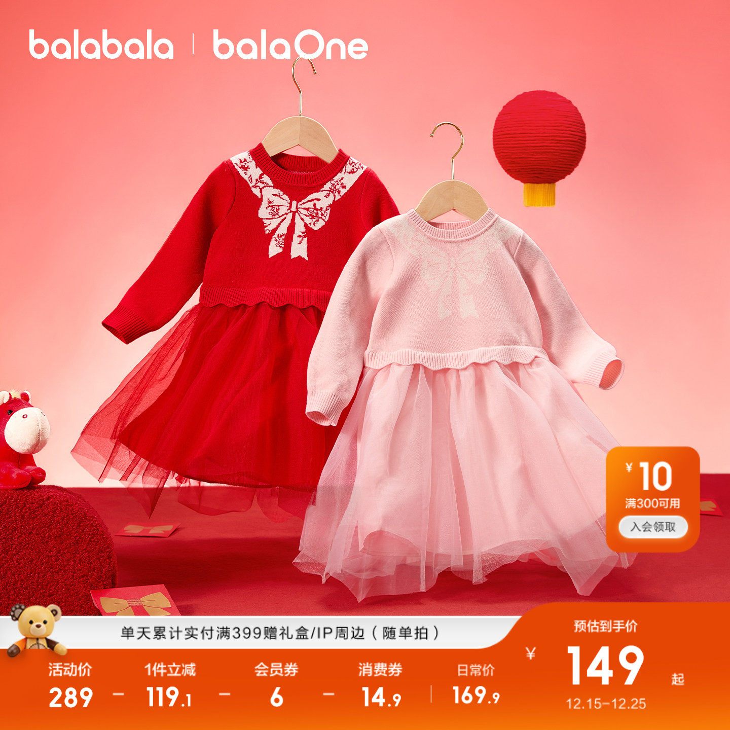 巴拉巴拉童装女童连衣裙2025新秋冬装网纱儿童裙子新年拜年服洋气