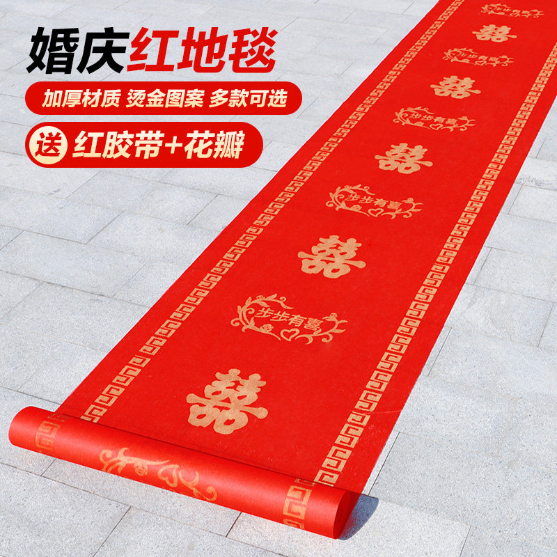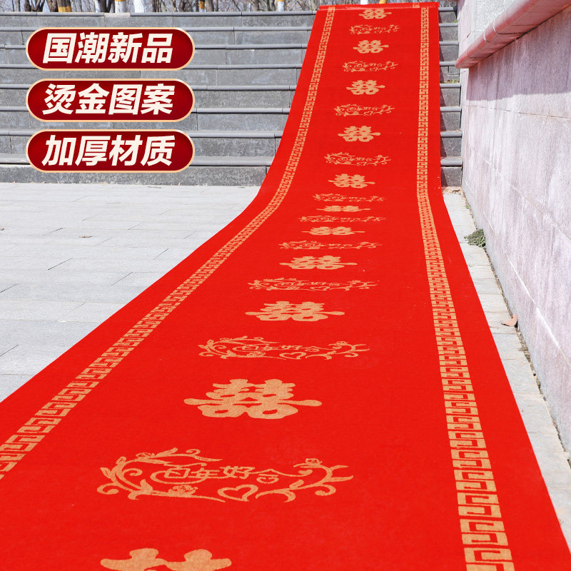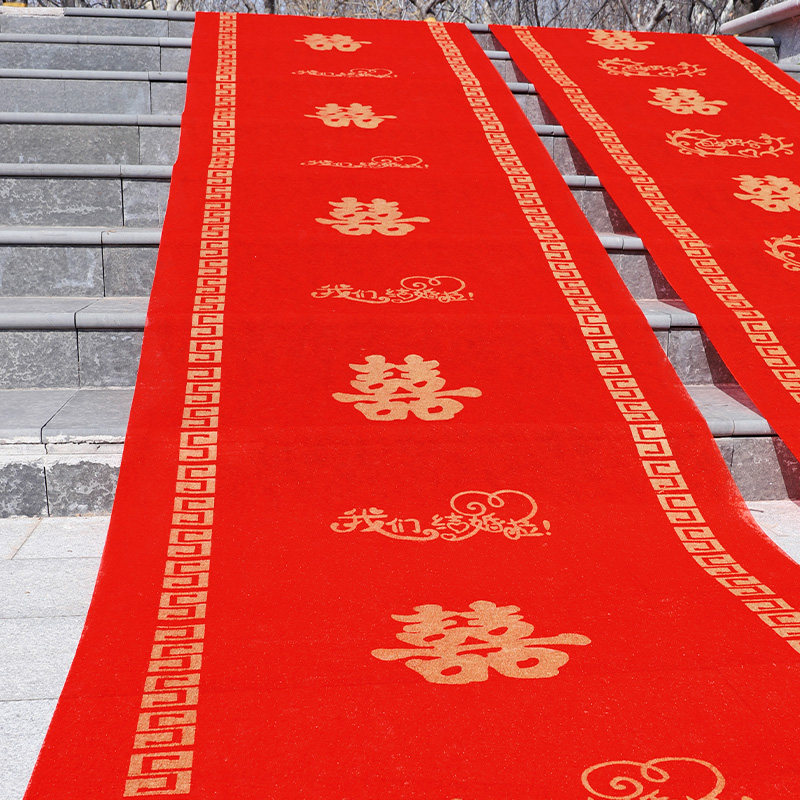 结婚红地毯一次性楼梯门口加厚无纺布喜字婚庆用品红色大地毯