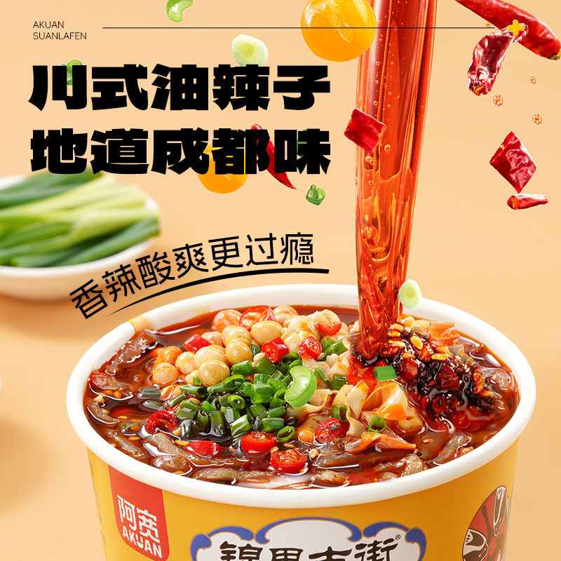 阿宽鲜粉酸辣粉粗湿粉小鲜粉杯装免煮冲泡方便粉丝宿舍夜宵