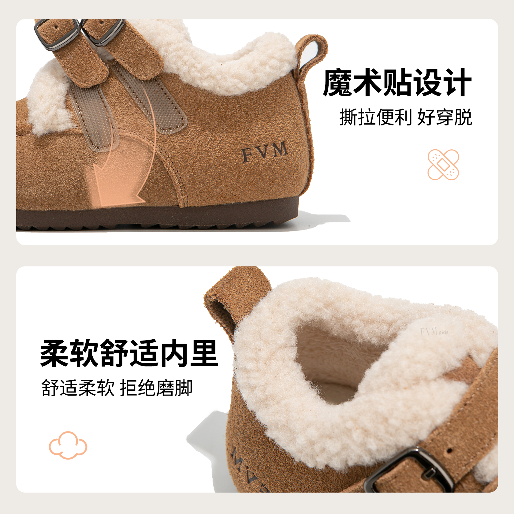 FVM女童鞋子儿童二棉鞋雪地靴2026冬季新款加绒勃肯宝宝毛毛大童