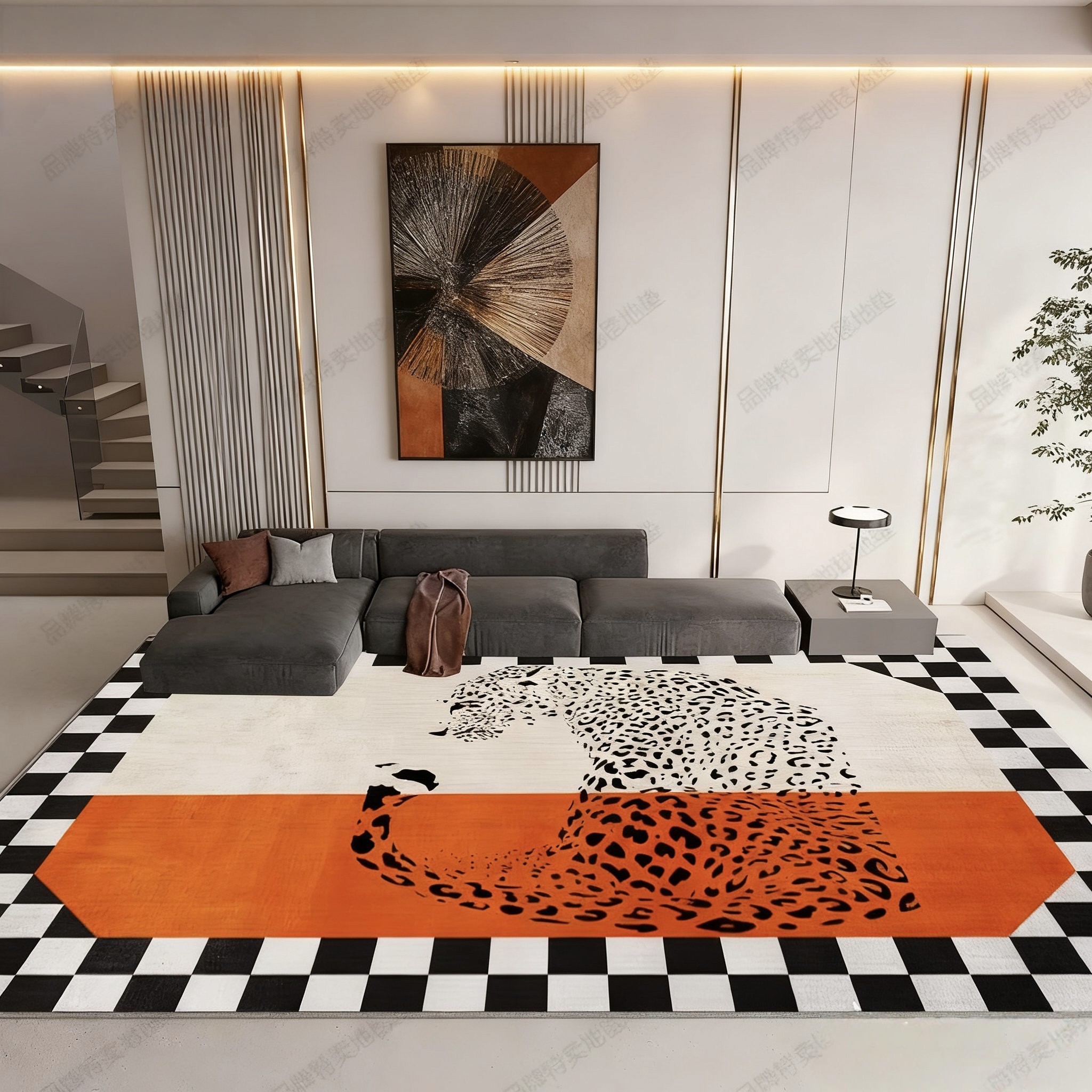 新款美式客厅豹纹地毯沙发茶几毯轻奢高级感卧室加厚毛绒防滑地垫