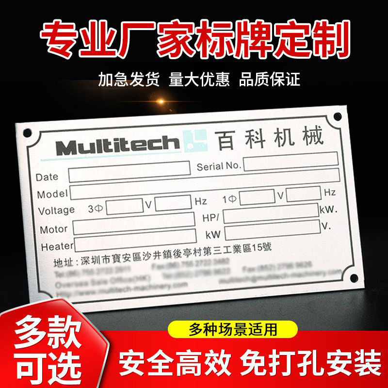 金属铭牌定制不锈钢蚀刻UV印刷激光雕刻定做机械面板铝牌标签订做