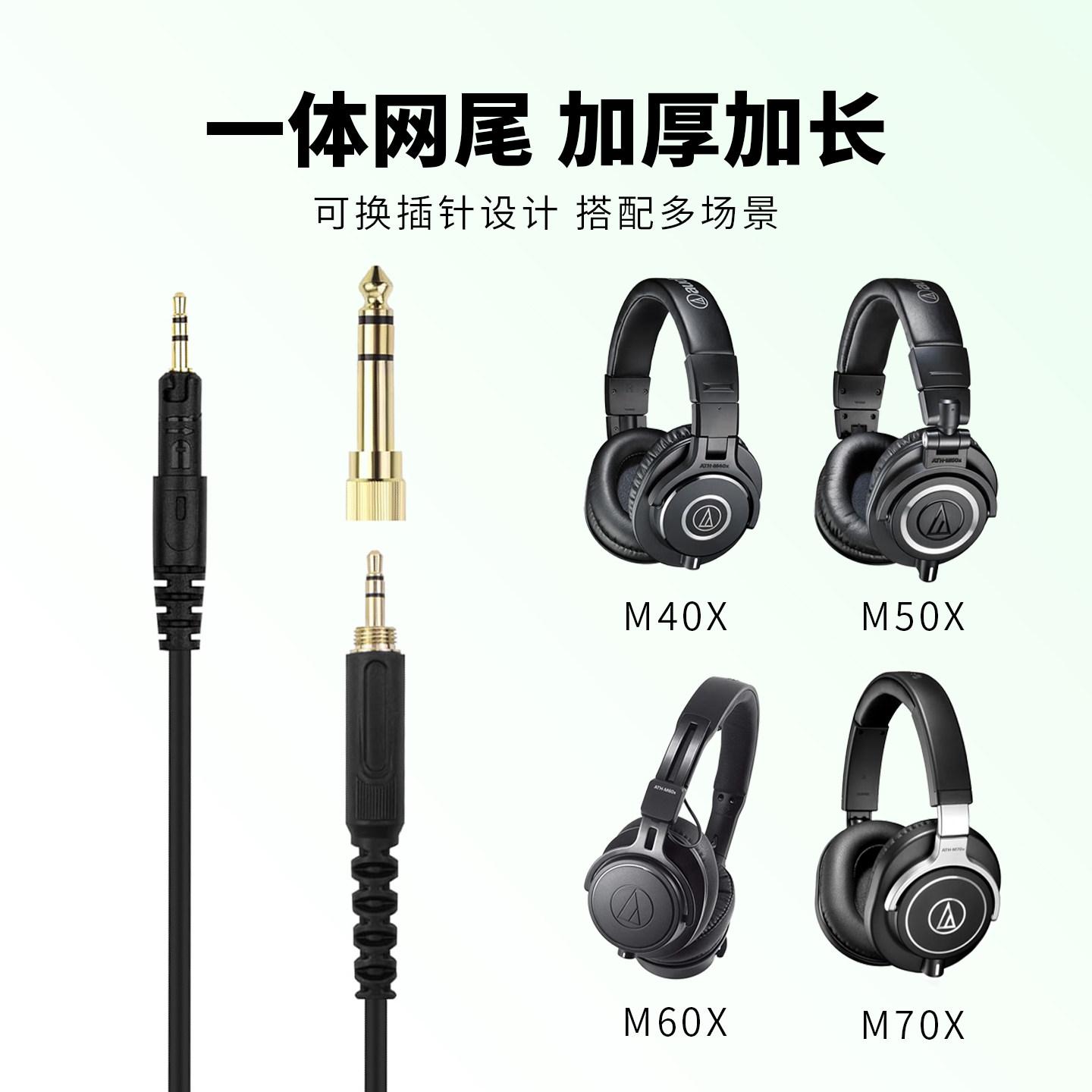 锐鹿适用铁三角ATH-M40X M50X M60X M70X耳机线监听耳机音频线铁三角M50XBT蓝牙耳机连接线升级线弹簧线配件
