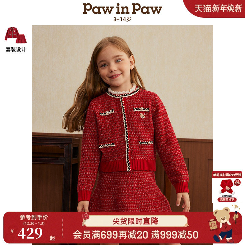 【新年系列】PawinPaw卡通小熊童装25年春夏新款女童红色套装裙