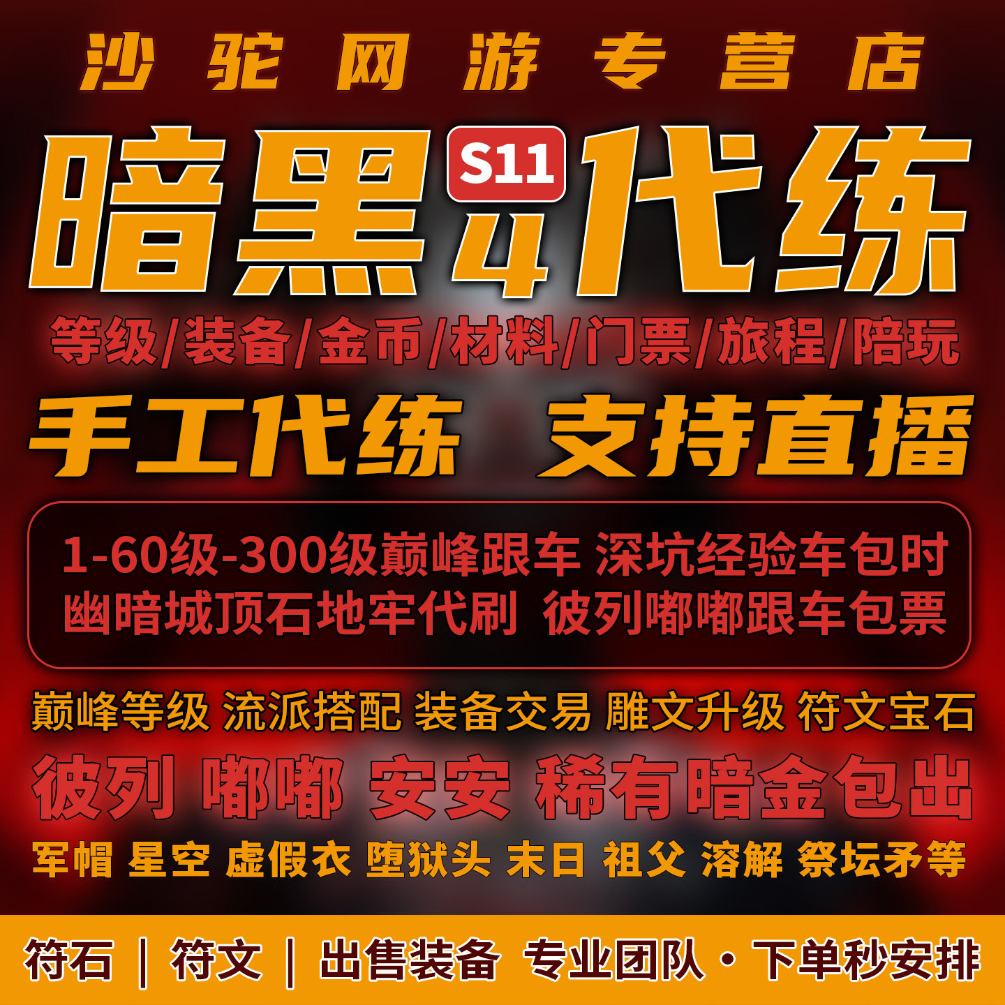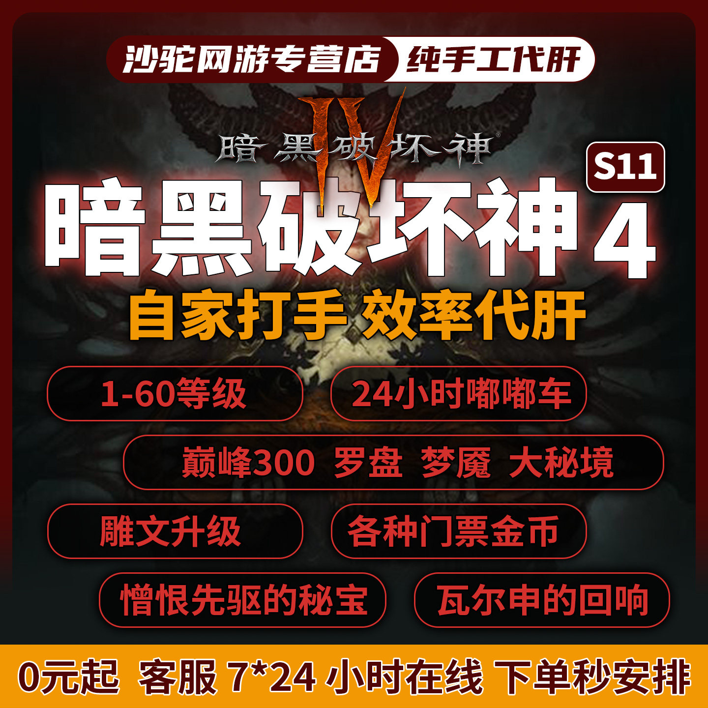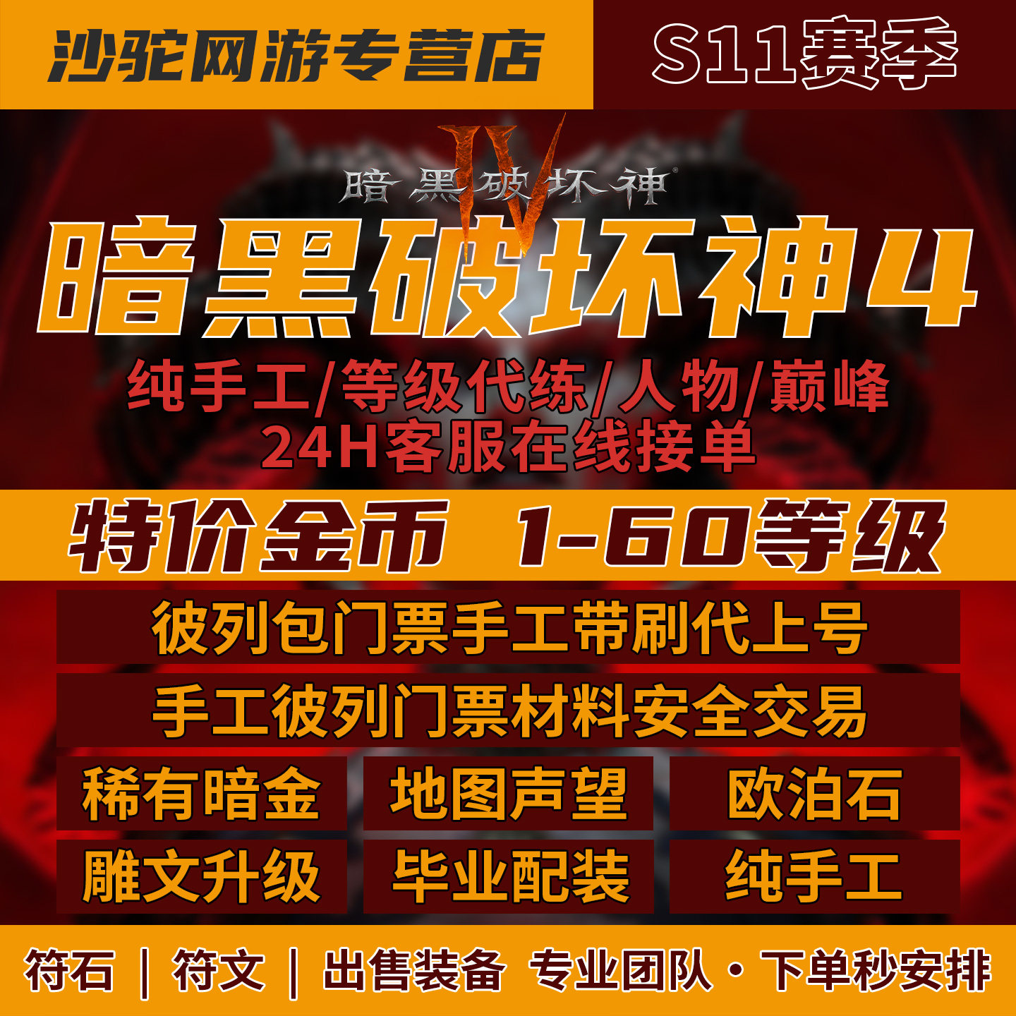 暗黑破坏神4代练代打带升级S11深坑欧泊度石彼列门票符文金币装备