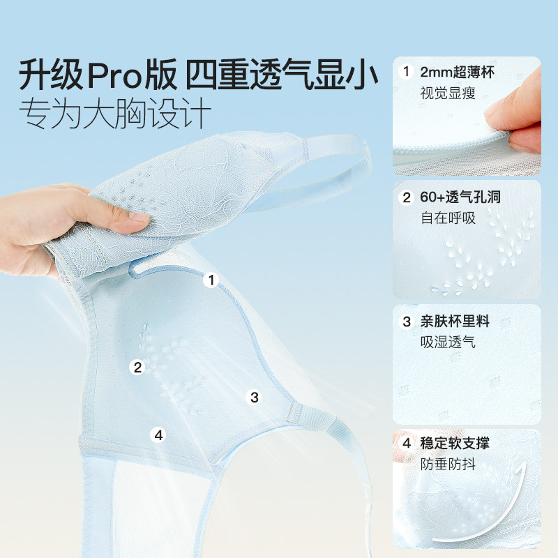 润微一拉薄大胸显小内衣女薄款无痕前扣拉链提拉防下垂收副乳文胸