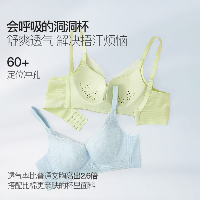 【洞洞杯】都市丽人内衣女舒适透气夏无钢圈蕾丝大胸显小聚拢文胸