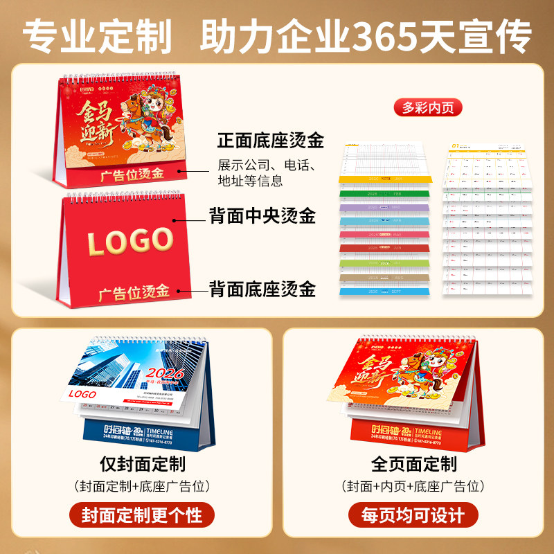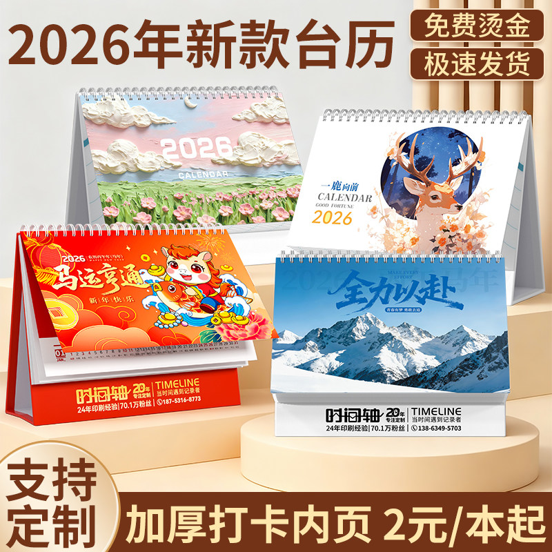 台历2026年新款日历定制logo创意简约小清新韩式办公年历个性中国风桌面摆件商务工作记事计划本订制广告月历