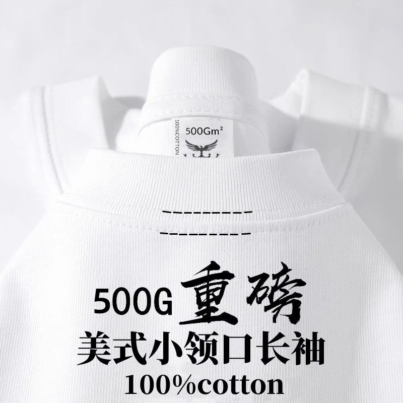 两件装500G纯棉重磅长袖t恤女日系小领口秋冬大码内搭上衣男双面
