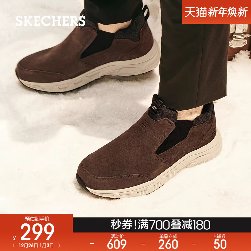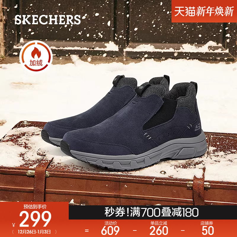 斯凯奇2025冬季新款男子加绒高帮靴舒适休闲运动鞋厚底户外雪地靴