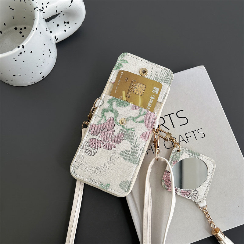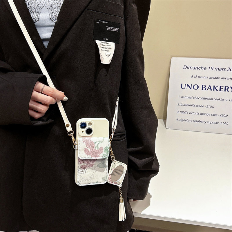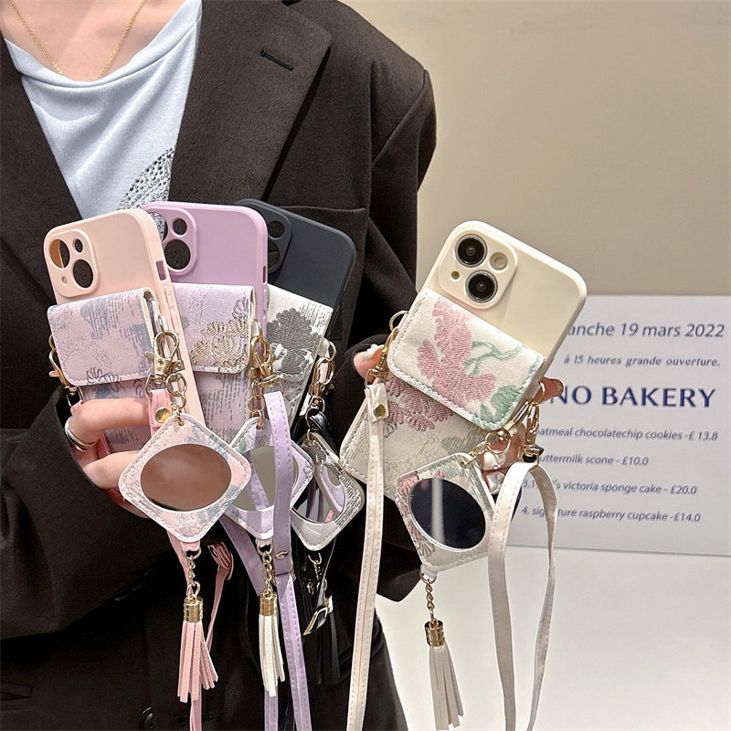 国潮风流苏补妆镜卡包适用华为Pura70手机壳软90se荣耀200背带P60pro斜挎mate50挂绳nova12/854se畅享x30油画