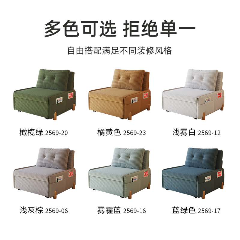 司朴舒芙蕾沙发床小户型书房可伸缩抽拉一体两用灯芯绒单人沙发